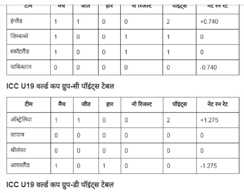 इंग्लैंड, ऑस्ट्रेलिया और अफगानिस्तान की जीत के बाद अंडर-19 वर्ल्ड कप पॉइंट्स टेबल ( Points Table) में बड़े बदलाव हुए हैं। ग्रुप-ए में भारत पहले पायदान पर बना हुआ है, वहीं ग्रुप-बी में इंग्लैंड, ग्रुप-सी में ऑस्ट्रेलिया और ग्रुप-डी में वेस्टइंडीज नंबर-1 है। पाकिस्तान इस हार के बाद सबसे नीचे चौथे पायदान पर है। आईए एक नजर U19 वर्ल्ड कप 2026 की पॉइंट्स टेबल पर डालते हैं-