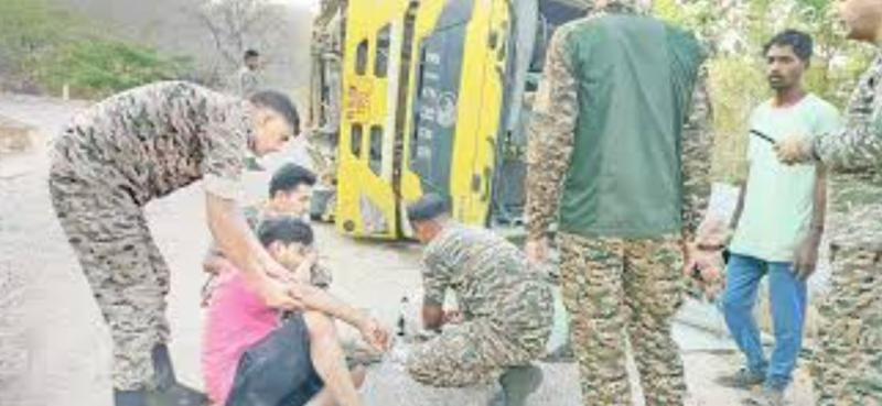बड़ा हादसा: पुसपाल घाट में हाइवा दुर्घटनाग्रस्त, तीन घायल, CRPF ने दिखाई त्वरित मदद