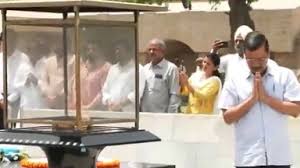 अरविंद केजरीवाल AAP नेताओं के साथ राजघाट पहुंचे