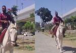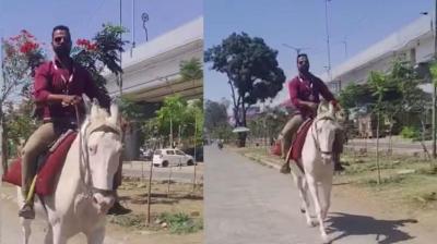 देवास में बैंक कर्मचारी का अनोखा अंदाज, घोड़े पर सवार होकर पहुंचा ऑफिस