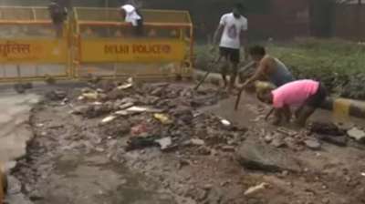 अशोका रोड पर एक और सड़क धंसी, सी-हेक्सागन से विंडसर प्लेस तक तीन फुट चौड़ा हिस्सा गिरा
