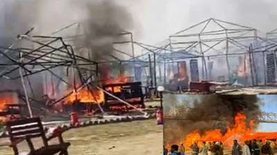 महाकुंभ में फिर लगी आग, कई पंडाल जलकर राख, डोम सिटी में भी उठी आग की लपटें