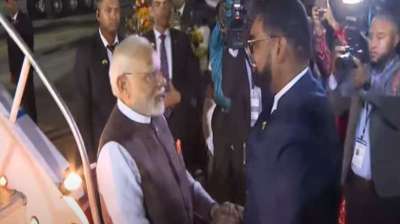 जार्जटाउन (गुयाना)। प्रधानमंत्री नरेन्द्र मोदी तीन देशों की अपनी यात्रा के अंतिम चरण में बुधवार को गुयाना पहुंचे। गुयाना के राष्ट्रपति इरफान अली, प्रधानमंत्री मार्क एंथनी फिलिप्स और 12 से...