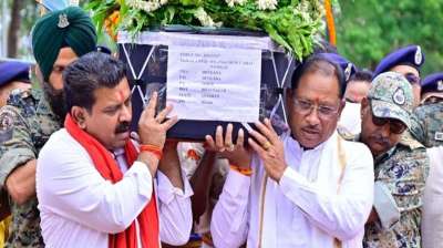 नक्सल विरोधी अभियान में शहीद मेहुल सोलंकी को सीएम विष्णुदेव साय ने दी श्रद्धांजलि, पार्थिव शरीर को दिया कंधा