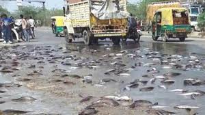 नई दिल्ली|दिल्ली-मेरठ एक्सप्रेसवे पर बुधवार दोपहर विजयनगर क्षेत्र में एक मालवाहक वाहन अनियंत्रित होकर पलट गया। वाहन में मछलियों से भरे आइसबॉक्स रखे थे, जो पलटते ही सड़क पर बिखर गए। एक्सप्रेसवे पर अचानक मछलियां फैली देखकर राहगीर उन्हें लूटने के लिए दौड़ पड़े। इससे लंबा जाम भी लग गया।प्रत्यक्षदर्शियों के अनुसार, मालवाहक वाहन दिल्ली से मेरठ की ओर जा रहा था। विजयनगर थानाक्षेत्र में चालक ने अचानक ब्रेक लगाया, जिससे वाहन असंतुलित होकर पलट गया। हादसे में चालक को गंभीर चोट नहीं आई, लेकिन सड़क पर बिखरी मछलियों के कारण यातायात प्रभावित हो गया। मछलियां सड़क पर गिरते ही कुछ लोग उन्हें उठाने के लिए दौड़ पड़े। हालांकि, छोटे हाथी के चालक और उसके साथियों ने लोगों को खदेड़कर स्थिति संभालने का प्रयास किया। इसी बीच वाहनों की कतारें लग गईं और एक्सप्रेसवे पर रफ्तार थम गई। सूचना मिलते ही पुलिस मौके पर पहुंची और स्थिति काबू करने में जुट गई।पुलिस ने मालवाहक को सड़क किनारे कराया और बिखरी मछलियों को ड्रम और आइसबॉक्स में भरवाया। कड़ी मशक्कत के बाद वाहन और ड्रम आदि को एक्सप्रेसवे से हटवाया गया। डीसीपी ट्रैफिक त्रिगुण बिसेन ने बताया कि पुलिस ने तत्परता दिखाते हुए कुछ ही समय में जाम खुलवा दिया। मछलियों से भरे आइसबॉक्स हटाकर मालवाहक को सुरक्षित स्थान पर भेज दिया गया है।